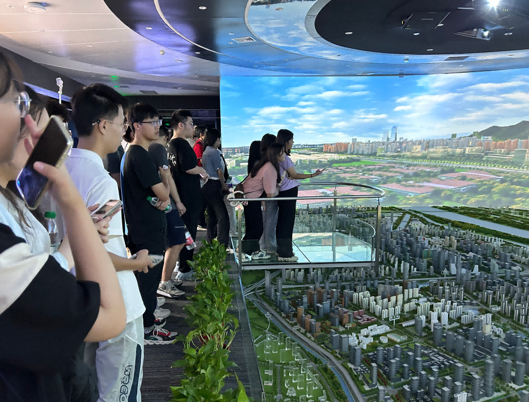 园区内现代建筑群错落有致,每一砖一瓦都蕴含着创新和科技的基因。3118acm云顶官网科技IT菁英暑期实训营的学员们怀揣着对科技的无限憧憬步入研创园展厅。展厅内部设计充满科技感,一块块巨大的模型和显示屏映入眼帘,生动展现了研创园的科技规划,以及从梦想走向现实的开展历程。